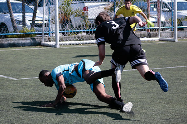 O jogo começou a ficar pegado. Dener deixou o braço no rosto de Ron e levou cartão amarelo. Logo depois Renan gingou, deixou Intera no chão, mas adiantou demais quando botou a bola na frente. João saiu bem do gol para pegar. Xavier levou pela direita e bateu cruzado para ninguém. Depois, Renan também finalizou nas mãos do goleirão adversário.