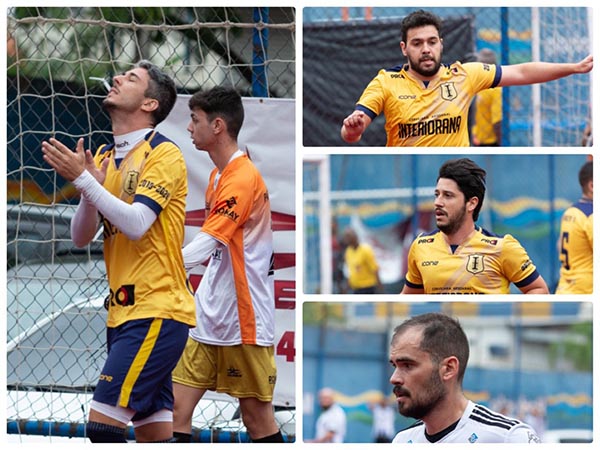 high voltage e querendo derrubar o muro amarelo. Tavinho trotou pela meiuca e rolou para Renas, no corredor direito, soltar uma sapatada, mas Cipó fez um DEFESÃO e mandou para escanteio. O lance seguiu, bola alçada no meio do pagode por Vinão, Renas desviou e Vitinho Laruccia tirou em cima da linha. Tinha mais! Improvisado na meta, Fubá experimentou da quadra defensiva, chute venenoso e Cipó deu uma manchete para linha de lado. Será que o melhor ataque irá conseguir furar esse ferrolho?