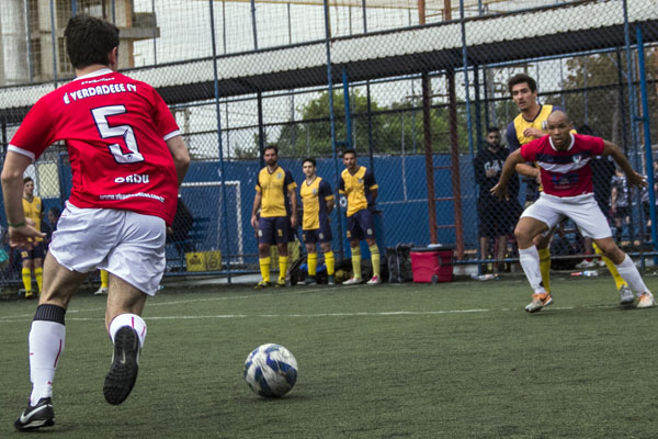 Na etapa derradeira, o jogo ficou um pouco mais aberto, já que o É Verdadeee se viu obrigado e sair para o jogo. E o time tricolor até que começou bem e deu o primeiro arremate ao gol. Raphão recebeu passe em profundidade e chegou chapando por cima da meta.