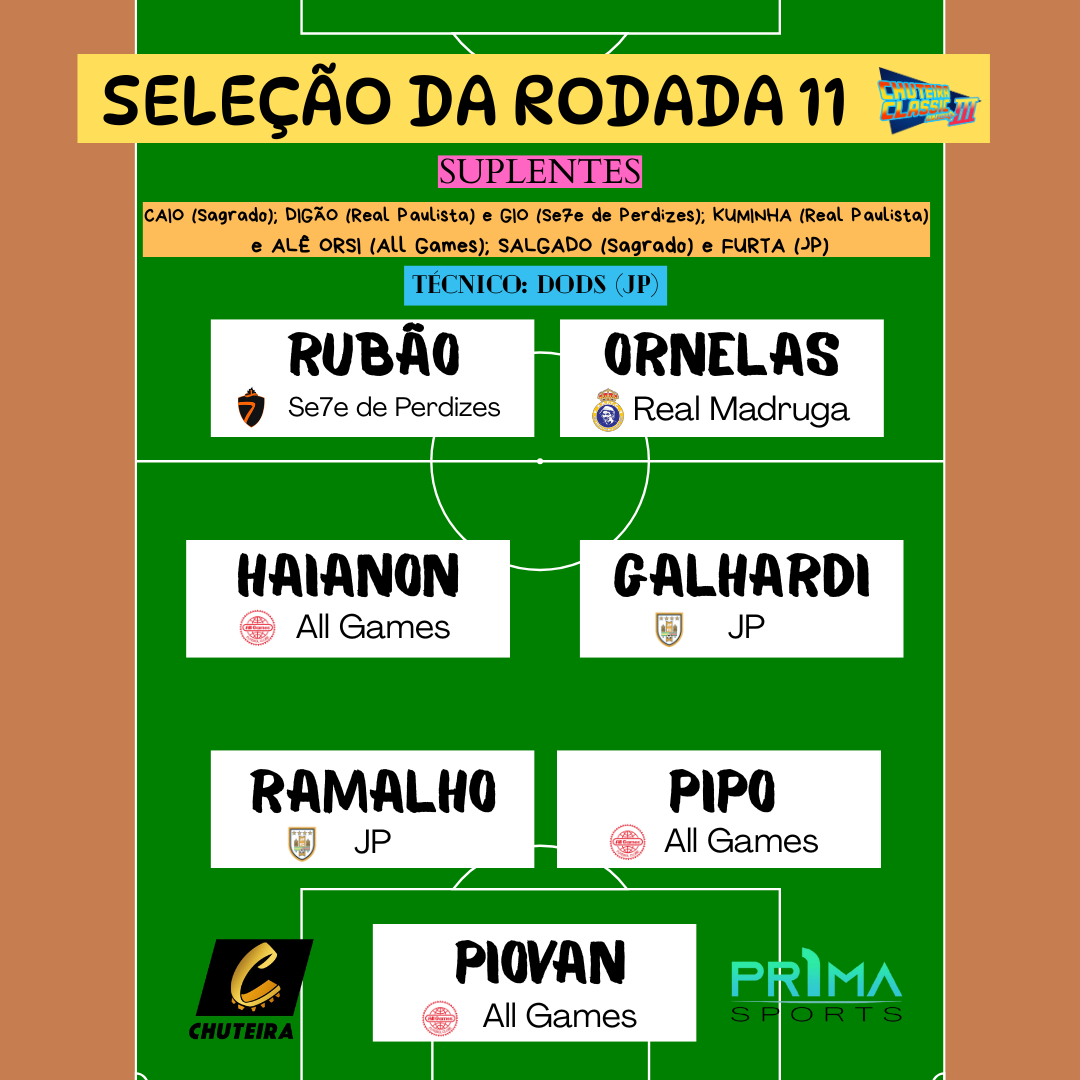 Entre essa turma, tudo definido: Real Madruga e Se7e de Perdizes debutam numa fase final de Chuteira Classic se encarando, enquanto o All Games terá sua sétima oportunidade para quebrar o tabu indigesto de nunca ter superado o Real Paulista Classic na história. As Quartas de final só acontecem em novembro, e até lá, quem está classificado para essa disputa, poderá ajustar ainda mais os ponteiros para, talvez, o maior desafio que já tiveram na Liga Chuteira de Ouro: levantar esse Classic 3 sem favorito!