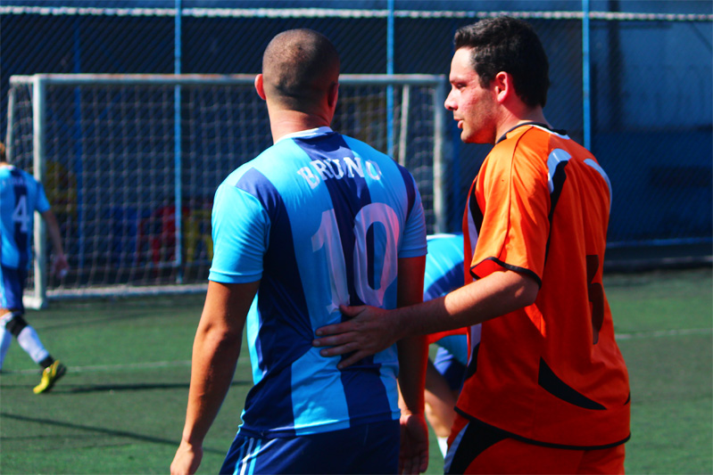 Faltando menos de cinco para o término parcial da partida, o zagueiro Alemão do Futeloucos fez falta clara e tomou cartão azul, pois já tinha tomado amarelo. Revoltado, ele saiu da quadra reclamando, de forma desnecessária, pois claramente ele acertou a canela de seu rival. Com um a menos, o Futeloucos conseguiu tomar mais um cartão amarelo. Dessa vez, o grandalhão Bruno, após tomar corte seco, levantou seu adversário.