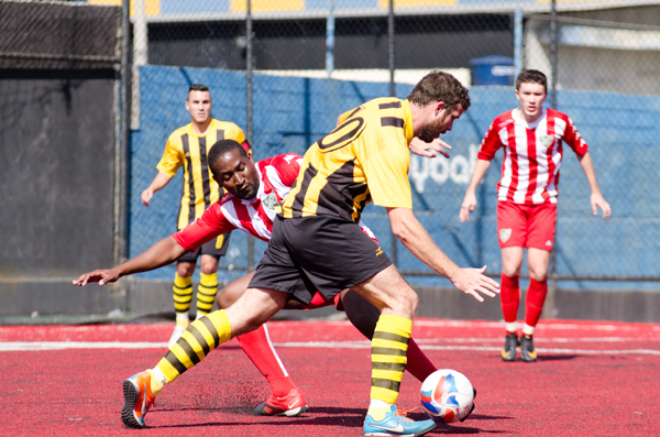 O primeiro tempo parecia definido, e as chances perdidas pelo Raça diziam que seria impossível qualquer virada. Após chute despretensioso para a área, a bola chegou a Matheus, que bateu de primeira e a bola explodiu... na trave de novo! Incrível! Porém, a esperança renasceu no finzinho da etapa inicial, o Raça achou combustível para seguir motivado e tentando. Quando a bola foi tocada para o meia, a batida venenosa de Felipe Santos rasteira foi desviada por Gui com a ponta dos dedos para escanteio. O tiro de canto foi cobrado rapidamente no bico da área, onde a bola encontrou o pé direito de Grasso, que bateu pro chão, o que enganou o goleiro. Bola na rede, 3 x 1 no placar e intervalo de jogo!