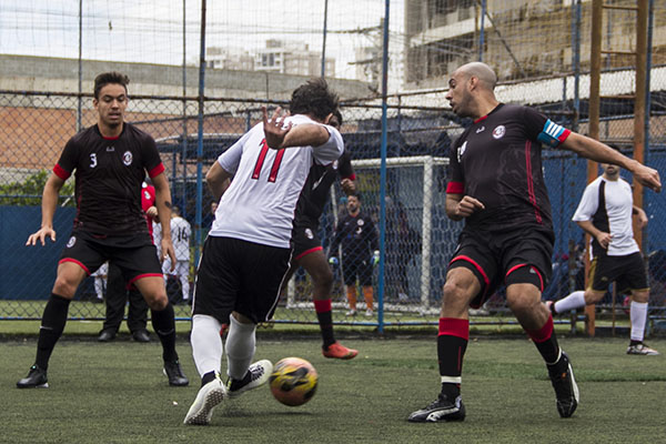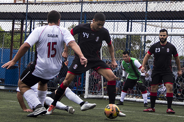 O time de preto mal comemorou a vantagem no placar. No minuto seguinte, o empate. Caio deu passe em profundidade para Gio, que tocou na saída do goleiro com categoria. Gol bonito, pelo passe e pela conclusão. Tudo igual! 1 x 1!